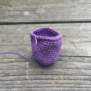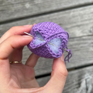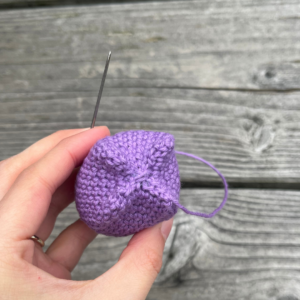 Vul het tulpje op met vulling en naai dicht, zodat er bovenop een kruis ontstaat. Bekijk de foto’s hieronder voor verduidelijking.