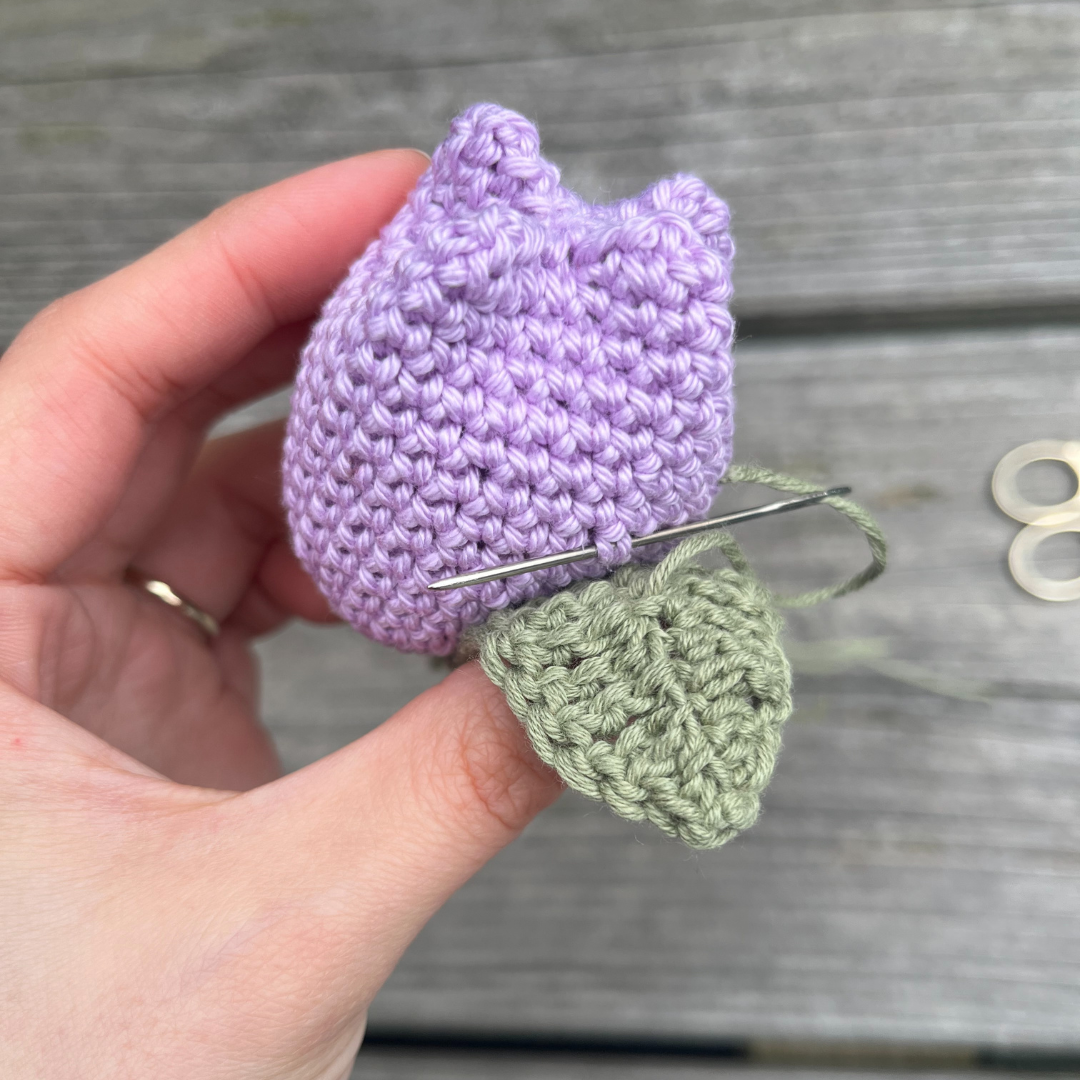 Naai de blaadjes aan beide kanten van de tulp. Werk alle losse draadjes weg.